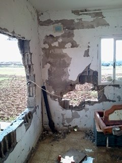 Naser comenzó a construir una nueva casa, sin embargo, su situación económica impide acabar de construirla y cada mañana, mira con resinación los resquicios que quedan de su vivienda anterior, a la par que se pregunta cuándo podrá terminar su nuevo hogar.