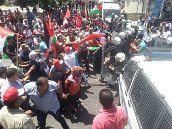 | Centenares de palestinos manifestaron contra la decisión de Abbas de negociar en el ‘plan Kerry’, reprimidos por la policía de la ANP |