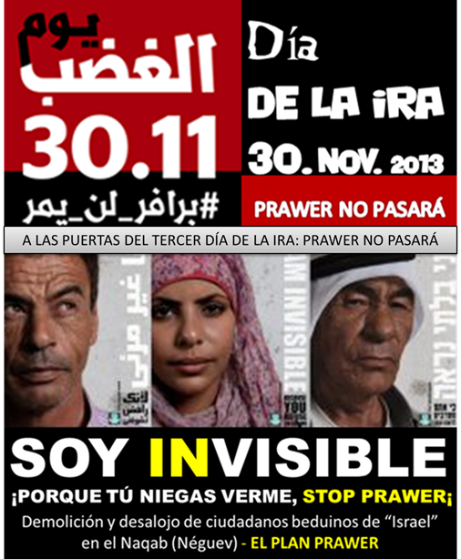 Los movimientos juveniles y las coaliciones nacionales emitieron un comunicado anunciando una fecha para el tercer día de la ira, este 30 de noviembre de 2013, en contra del plan «Prawer», que daría lugar a la confiscación 800.000 dunums de tierra en el Naqab (Néguev), el desplazamiento de unos 70.000 residentes y la demolición de 38 aldeas. Las protestas se organizarán en el día de la ira en el Negev, Haifa, Ramallah, Gaza. Mientras que ese mismo día, vigilias se celebrarán en decenas de ciudades de todo el mundo.