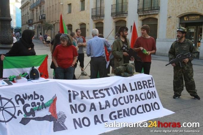 Es por todo esto, que ciudadanos y activistas salmantinos han llevado a cabo una protesta este miércoles en la plaza del Liceo de Salamanca, con el fin de denunciar “la irrespirable situación de violencia en Oriente Medio y exigir el cumplimiento de las resoluciones de la ONU, así como la efectividad de las decisiones de la Corte Internacional de Justicia en Israel. El muro es ilegal y debe derribarse, pues causa sufrimiento a cientos de miles de personas inocentes y forma parte de una estrategia institucional de odio hacia los legítimos habitantes de las tierras de Palestina. Nuestros hijos palestinos nacerán con el puño levantado, es inevitable”.