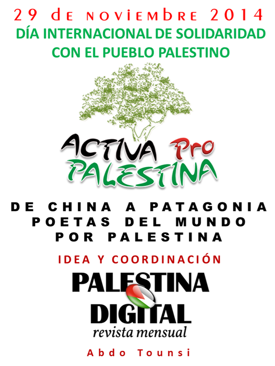 La Revista PALESTINA DIGITAL con motivo del DÍA INTERNACIONAL DE SOLIDARIDAD CON EL PUEBLO PALESTINO y 2014 Año Internacional de Solidaridad con el Pueblo PALESTINO, lanza la campaña DE CHINA A PATAGONIA, POETAS DEL MUNDO POR PALESTINA, sábado 29 de noviembre 2014.