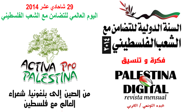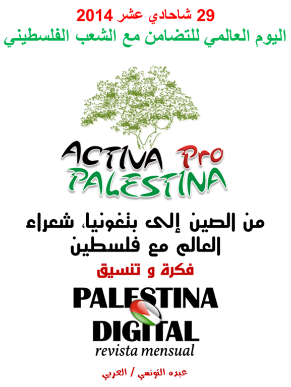 مجلة فلسطين الرقميه والتي تصدر بالغه الإسبانيه و يمناسبة «اليوم العالمي للتضامن مع الشعب الفلسطيني» و 2014 عام التضامن العالمي مع الشعب الفلسطيني» دعت لحملة «من الصين إلى بتغونيا، شعراء العالم مع فلسطين» يوم السبت 29 شاحادي عشر 2014