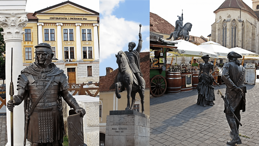 La ciudadela está llena de estatuas sobre todo de bronce. Alba Iulia, situada en el centro de Rumanía en la región de Transilvania. Se encuentra a 100 km de Cluj-Napoca y a 75 km de Sibiu (una ciudad con mucha historia), por la carretera que une a estas dos ciudades.