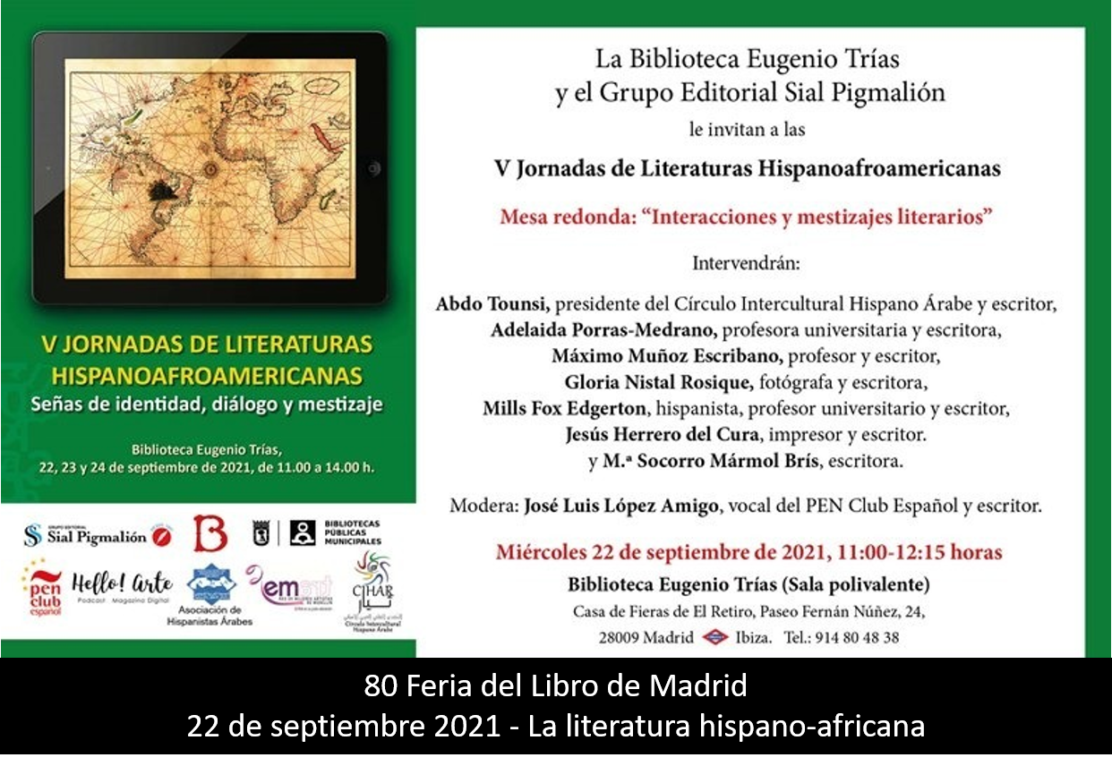 Exposiciones, Foros, Literatura, Mundo árabe La literatura hispanoafricana y la 80 FLM Fecha: 23/09/2021Autor/a: Abdo Tounsi 0 Comentarios Tuve el placer de participar en esta mesa redonda: «Interacción y mestizajes literarios» organizada por el Grupo Editorial Sial Pigmalión 22 de septiembre 2021 Al Dr. Hussam abu Safiya Los musulmanes tendremos un lugar donde caernos muertos en Madrid نسخة الدُستور الإسباني باللغة العربية Share this/ Compartir/ إنقله إلى: Haz clic para compartir en Facebook (Se abre en una ventana nueva) Facebook Haz clic para compartir en X (Se abre en una ventana nueva) X Haz clic para compartir en LinkedIn (Se abre en una ventana nueva) LinkedIn Haz clic para compartir en Reddit (Se abre en una ventana nueva) Reddit Haz clic para compartir en Pinterest (Se abre en una ventana nueva) Pinterest Haz clic para compartir en Tumblr (Se abre en una ventana nueva) Tumblr Haz clic para compartir en WhatsApp (Se abre en una ventana nueva) WhatsApp Haz clic para enviar un enlace por correo electrónico a un amigo (Se abre en una ventana nueva) Correo electrónico Haz clic para imprimir (Se abre en una ventana nueva) Imprimir Me gusta Cargando... Relacionado