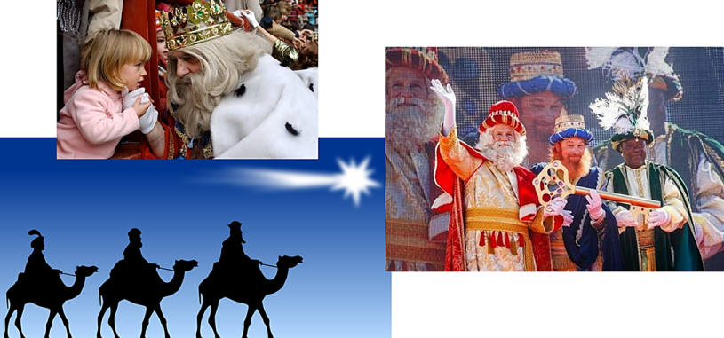 ملوك الشرق الثلاثة يطوفون الشوارع في تقليد شعبي تعودت المدن والقرى الاسبانية وأمريكا اللاتينية على إحيائه، فالإسبان أكثر تعلقا بملوك الشرق بدلا من “سانتا كلوز”. في ليلة الخامس من كانون الثاني / يناير يُقام لملوك الشرق الثلاثة استقبال حافل باستعراض في الشوارع، تمهيدا لتقديم الهدايا للأطفال. وبهذه المناسبة تُنظم احتفالات واسعة لاستقبال الملوك في كل مدينة وقرية إسبانية، كل منها حسب طريقتها وعاداتها، وخلالها يقوم “الملوك الثلاثة” بتوزيع الحلوى على مستقبليهم، وفي اليوم التالي يقدمون الهدايا للأطفال