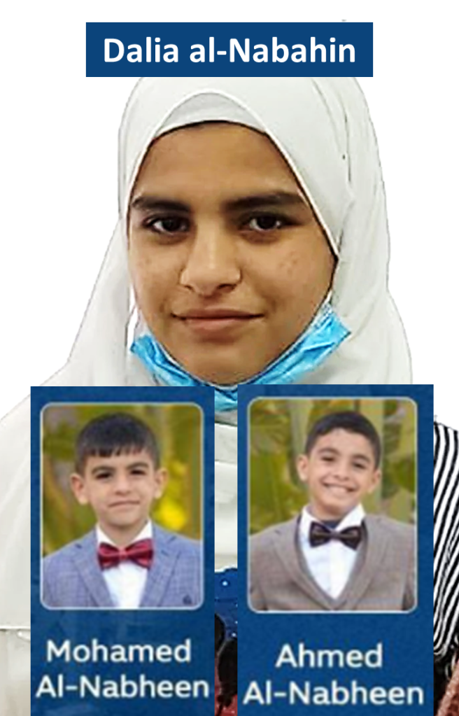 Yasser al-Nabahin y sus tres hijos: Muhammed Yasser Nimr al-Nabahin, de 13 años (izquierda); Ahmed Yasser Nimr al-Nabahin, nueve (centro); y su hermana, Dalia Yasser Nimr al-Nabahin, 13 (centro)