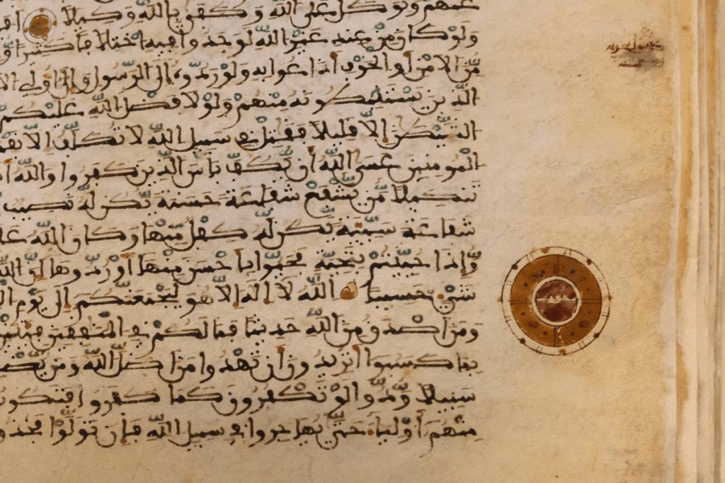 هناك احتمالان يفسران أنه كان في يد الامام والقاضي محمد الجيار، وأنه حرص على إخفائه بعد حظر حيازة كُتب عن الدين الإسلامي في أوائل القرن السادس عشر. من ناحية، كان إرثا عائلياً، يُنتقل القرآن من جيل إلى جيل، والذي يريد الوريث الاحتفاظ به بأي ثمن. ثانياً، كانت تابعة لمسجد كوتار- الذي بنيت فوقه الكنيسة الحالية لاحقا – وأنه بصفته إمام قرر إخفاءه حتى لا يتم تدميره. على أي حال، كان أمله هو استعادتها يوما ما. تقول المُستشرقة كاليرو: «الكلمة التي هي في صميم التاريخ هي الخوف: من أن المخطوطة سيتم اكتشافها أو أنها ستختفي»، الذي كان أكثر إعجابا بالمخطوطتين الأخرويتين المليئة بالفضول