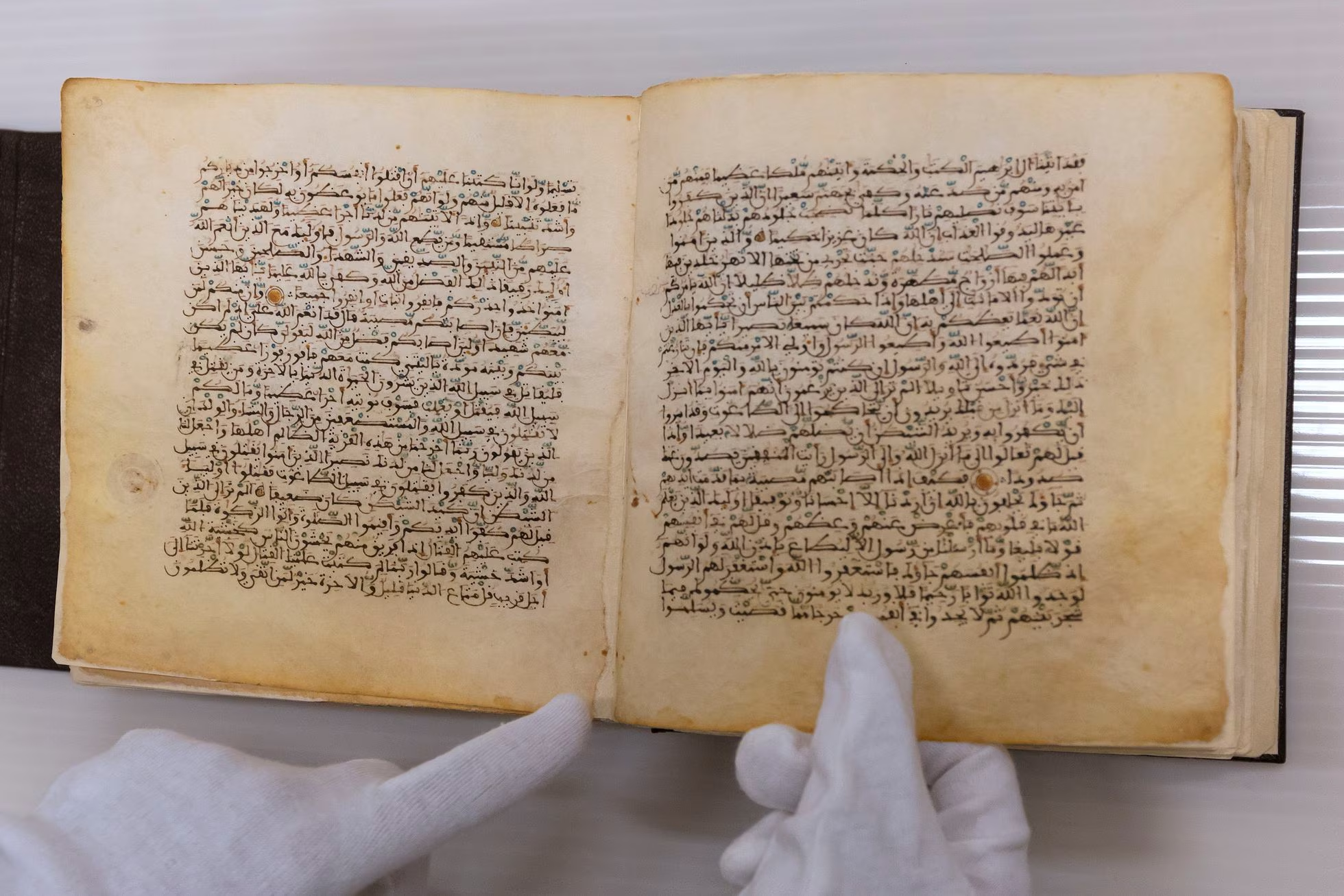 ظلت مخبأة لمدة 500 عام حتى تم العثور عليها أثناء عملية تجديد في 28 يونيو 2003. «لقد كانت مفاجأة»، تتذكر ماغدالينا سانتياغو، صاحبة المنزل. «لم يتوقع أحد حدوث شيء كهذا»، تقول المرأة، التي تتذكر أن المبنى كان على وشك «الانهيار». وضعوا الكُتب بين القش في تجويف خزانة مخبأة في الجدران العريضة الأصلية للمنزل الأندلسي. هناك كُتب أخرى من هذا الوقت تم إخفاؤها في الجدران في أجزاء مختلفة من الجغرافيا الإسبانية لعدة قرون، لكن هذا القرآن هو واحد من أقدم كتابين تم اكتشافهما في إسبانيا. «لقد كان اكتشافا استثنائيا»، تقول ماريا إيزابيل كاليرو، وهي مُستشرقة واستاذة جامعية مُتقاعدة أمضت الكثير من وقتها في دراسة النسخ الأصلية في جامعة ملقة قبل 20 عاما