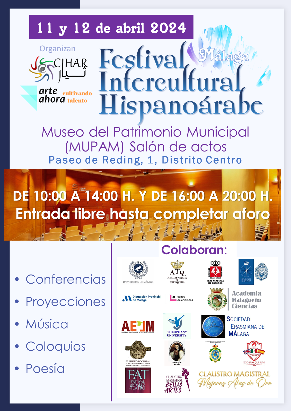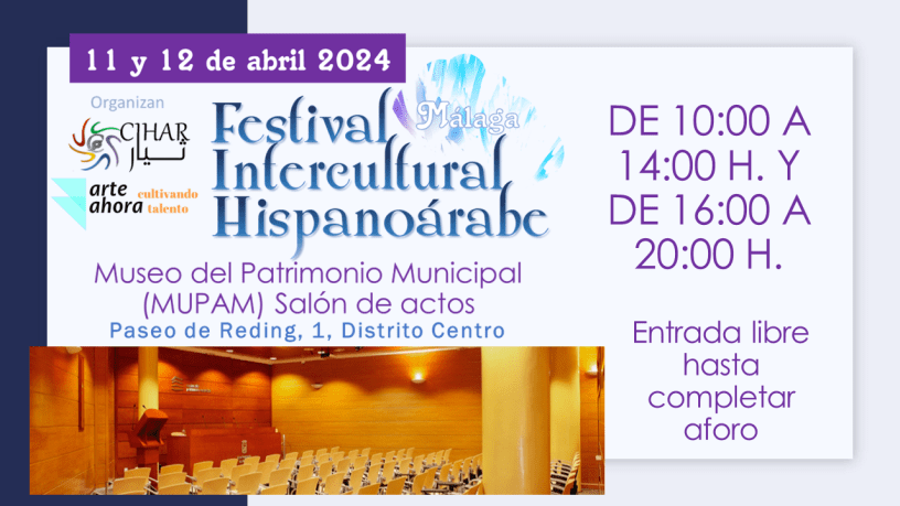 Círculo Intercultural Hispanoárabe (CIHAR) y Arte Ahora organizan este Festival Intercultural Hispanoárabe – Málaga, con la colaboración de Instituciones oficiales y socioculturales