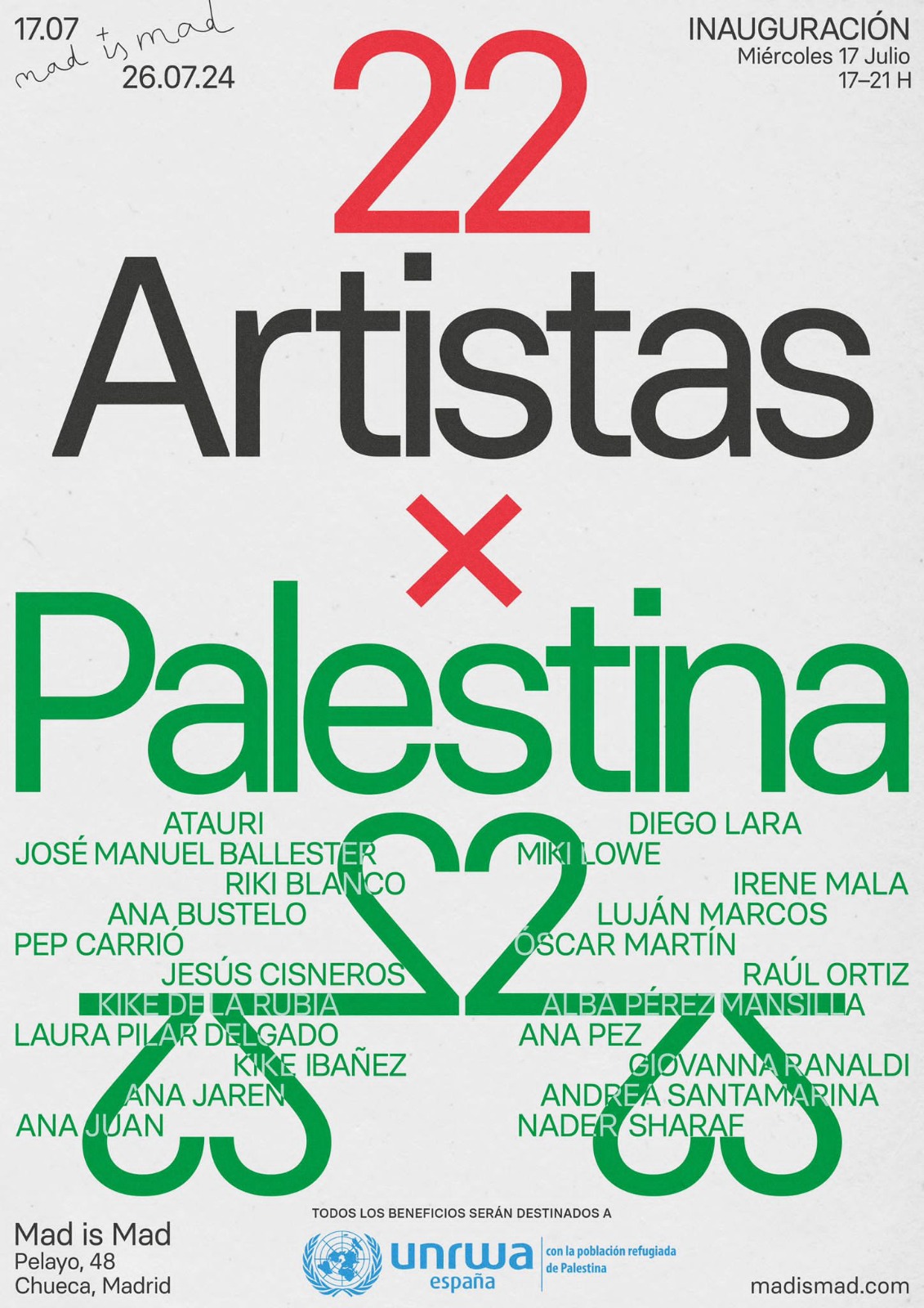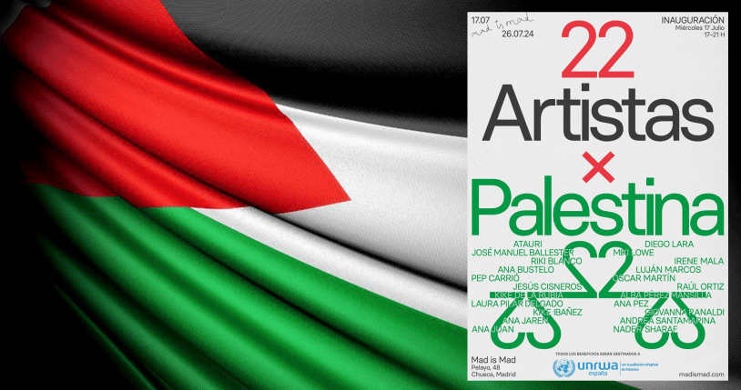 La inauguración de la exposición 22 Artistas Por Palestina, es el 17 de julio 2024 a las 17- 21 h. Calle Pelayo 48 – Chueca – Madrid.