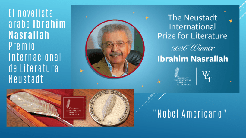 El poeta y novelista palestino Ibrahim Nasrallah ha ganado el Premio Internacional de Literatura Neustadt, conocido como el «Nobel Americano». Es el primer árabe en ganar este galardón, que reconoce su obra literaria, que aborda temas como el exilio, la identidad y la resistencia. Se celebrará una ceremonia en su honor en octubre de 2026.